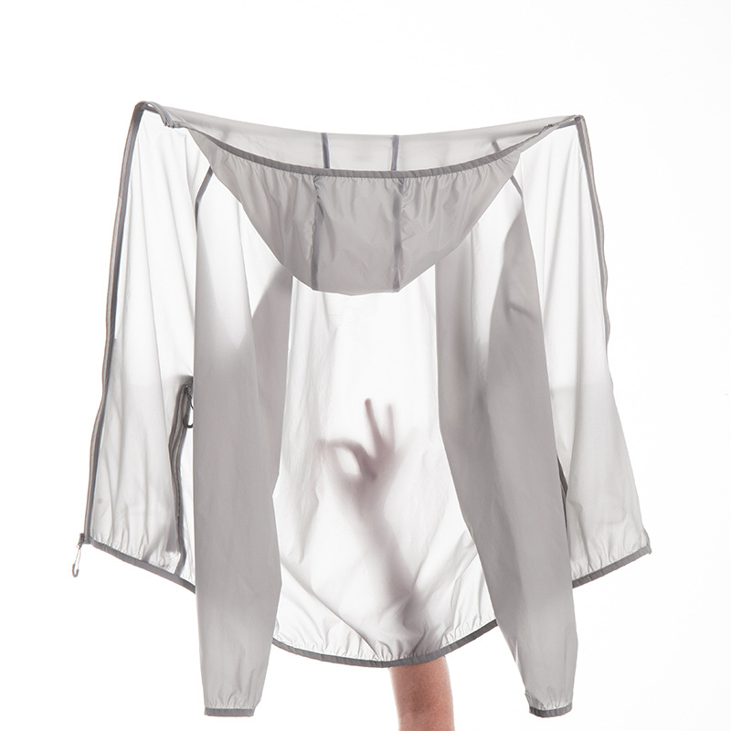 軽量で小さくたためるため持ち運びも便利。前開きファスナーで体温調節も自在で、日焼け対策グッズとして最適な一枚です。