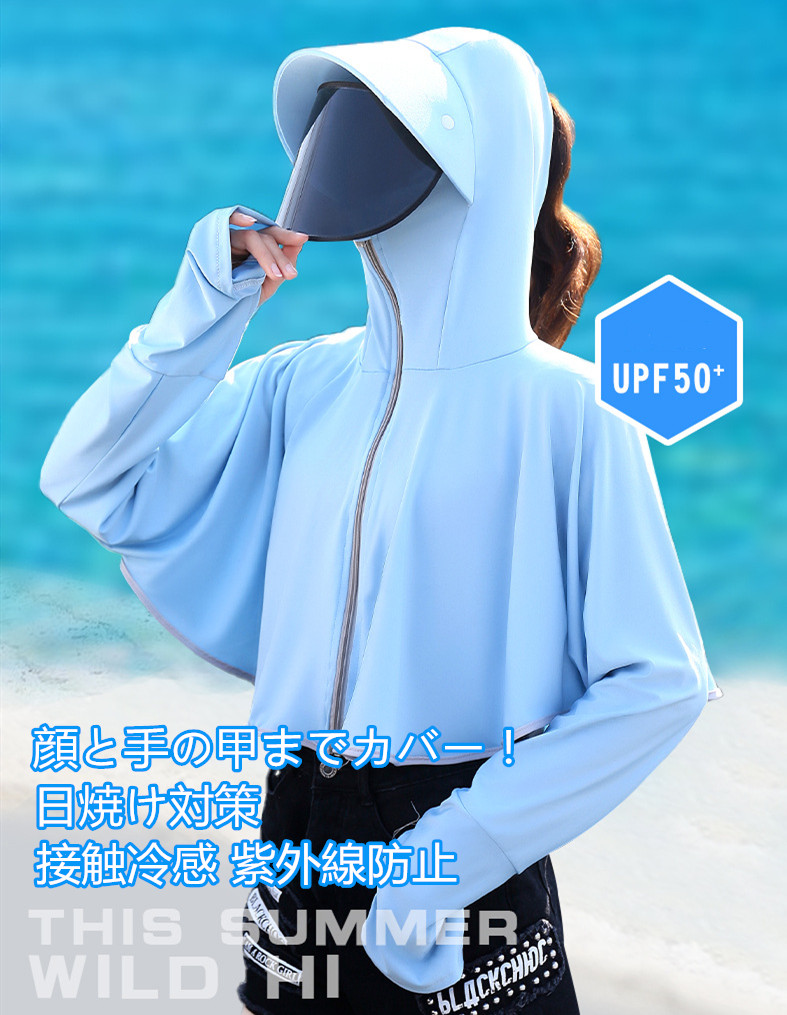 ファスナータイプでさっと羽織れて体温調節も自在な日焼け対策パーカーです。